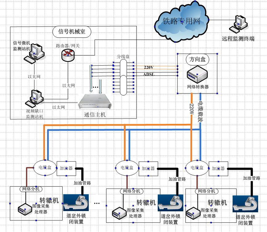 道岔外锁闭加油装置DY-2型载波式加油器是我公司在道岔缺口监测系统产品的基础上,,,,,,,全心设计,,,,,,,专为道岔外锁闭装置自动加油的装备。。。。。。。该系统能够与道岔缺口监测系总共用线路,,,,,,,兼容系统软件,,,,,,,还可以自力成系统事情。。。。。。。系统能够自动准时某人工远程控制为道岔外锁闭装置加油,,,,,,,坚持道岔外锁闭装置钩锁组件优异的润滑状态,,,,,,,镌汰和阻止因润滑不良缘故原由造成道岔外锁闭爆发气械故障,,,,,,,提高转换道岔的可靠性,,,,,,,延伸其使用寿命。。。。。。。系统应用后可实现镌汰维护职员上道作业时间,,,,,,,节约人力物力,,,,,,,为包管行车清静提供了新的高科技手段。。。。。。。