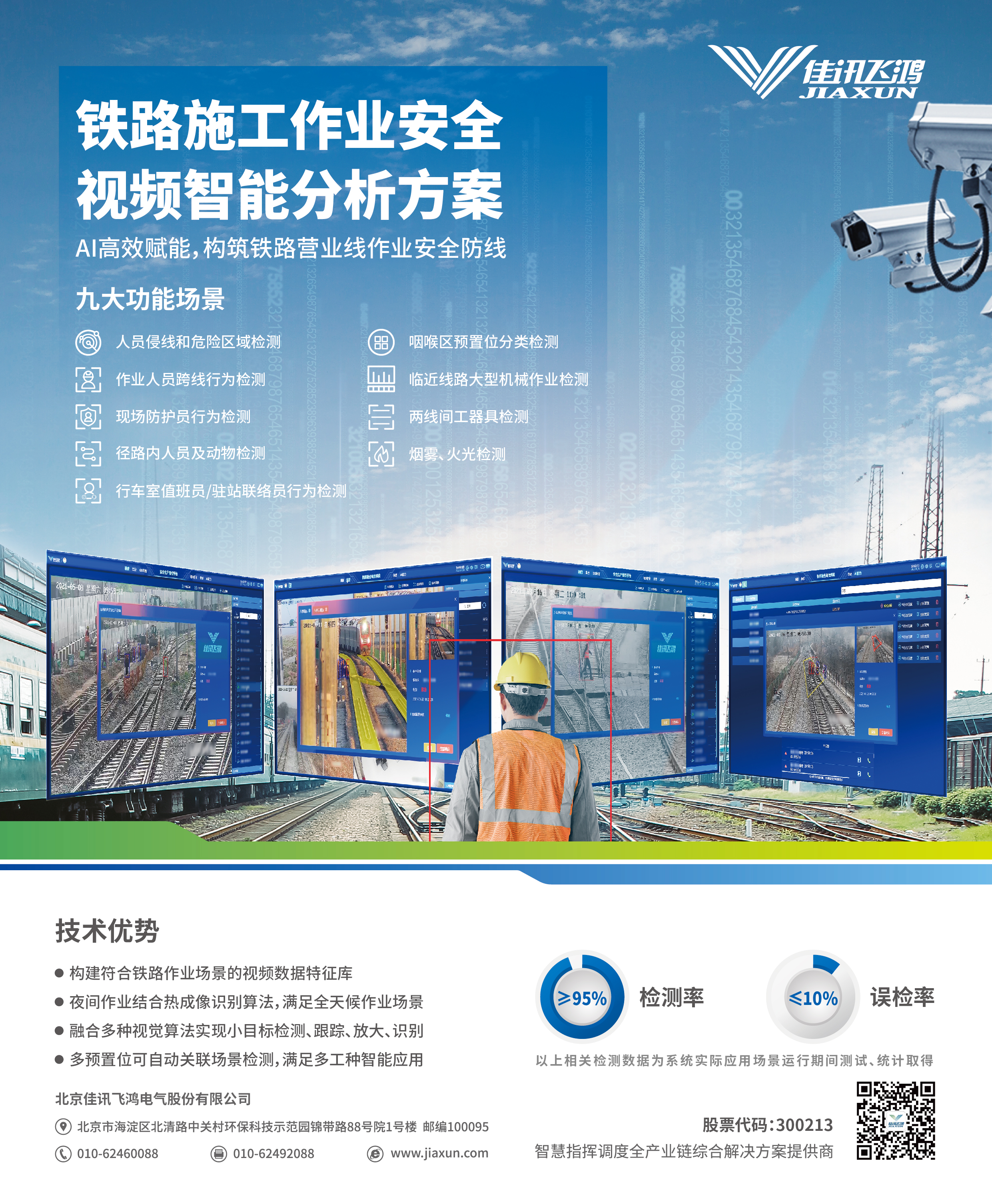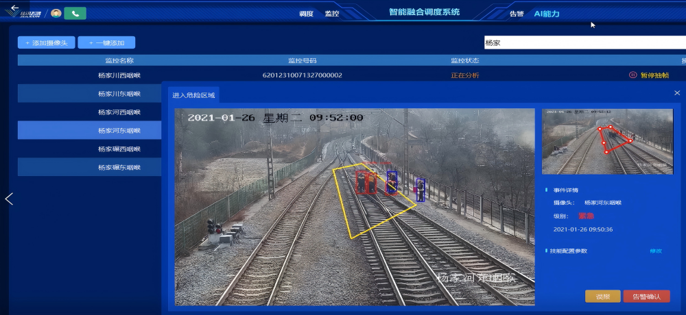 铁路施事情业清静管控计划基于机械视觉、深度学习手艺,,,,,,,,对作业区段情形危害、作业职员的违纪和不清静行为举行自动捕获、实时剖析、预警报警、营业联动,,,,,,,,降低人工盯控视频的劳动强度,,,,,,,,提高监控效率。。。。。系统通过深度剖析铁路作业管控与情形清静等场景下的营业流程,,,,,,,,立异构建"场景需求-算法迭代-价值验证"的闭环演进机制,,,,,,,,实现多模态SOTA算刑场景化重构,,,,,,,,攻克了重大情形下视频明确的行业难题,,,,,,,,实现了作业历程清静危害的实时智能监控,,,,,,,,提升了作业管控笼罩面和精准度,,,,,,,,加速了铁路清静数字化、智慧化生长。。。。。